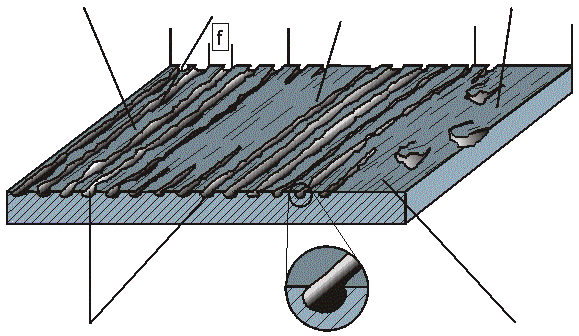 Vorschubrilligkeit der Schneide lediglich einebnen, ist nicht richtig. Das folgende Bild zeigt, dass das Material mit den Vorschubrillen, die die Schneide gebildet hat, durch die Führungsleisten