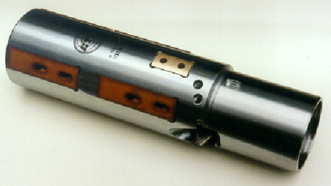 z.B. aus Hartgewebe oder Polyamid. Die am Umfang verteilten Dämpfungsleisten (meist 3 oder 5 Stück) haben die Aufgabe, die Führung des Werkzeugs, hier meist Aufbohrwerkzeuge oder Schälwerkzeuge, zu verbessern und Schwingungen, insbesondere die Biegeschwingungen von Werkzeug und Bohrrohr, zu reduzieren.