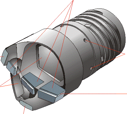 Werkzeuge zur Erzeugung von Bohrungen mit dem Ejektor-Tiefbohr- verfahren. Ejektor-Vollbohrwerkzeuge werden im Durchmesserspektrum von ca. 18,00 bis ca 200 mm eingesetzt.