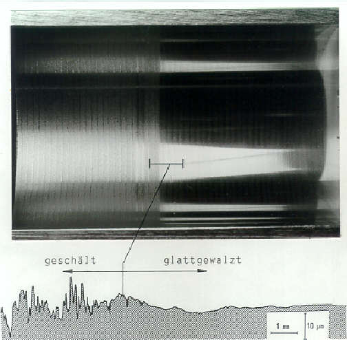 Eine geschälte Bohrungsoberfläche bietet sehr gute Voraussetzungen für das nachfolgende Glattwalzen. Hierbei wird durch einen Umformvorgang die durch Schälen erzeugte rauhe Oberfläche durch Überwalzen in eine sehr glatte verwandelt.