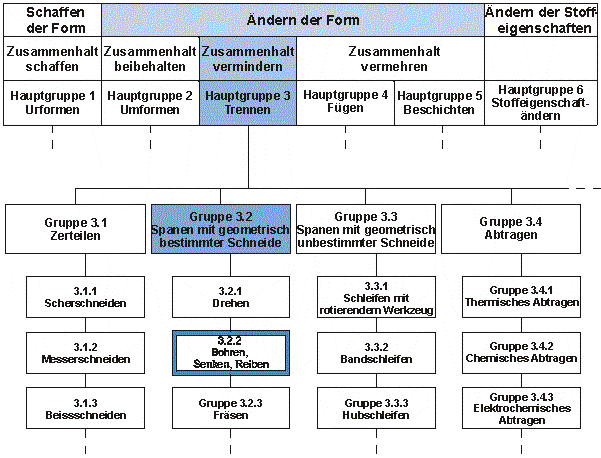 (z.B. Werkzeuge mit einer oder mehreren genau definierten Schneiden (Drehmeissel, Fräser)), und dem “Spanen mit geometrisch unbestimmter Schneide” (z.B. Schleifen